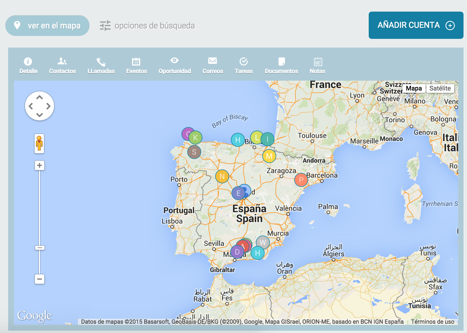 Cuando accedemos por primera vez a 'arewedoing o pulsamos en el botón Ver en el Mapa, veremos la localización geográfica de las cuentas que tenemos en ese momento en pantalla.