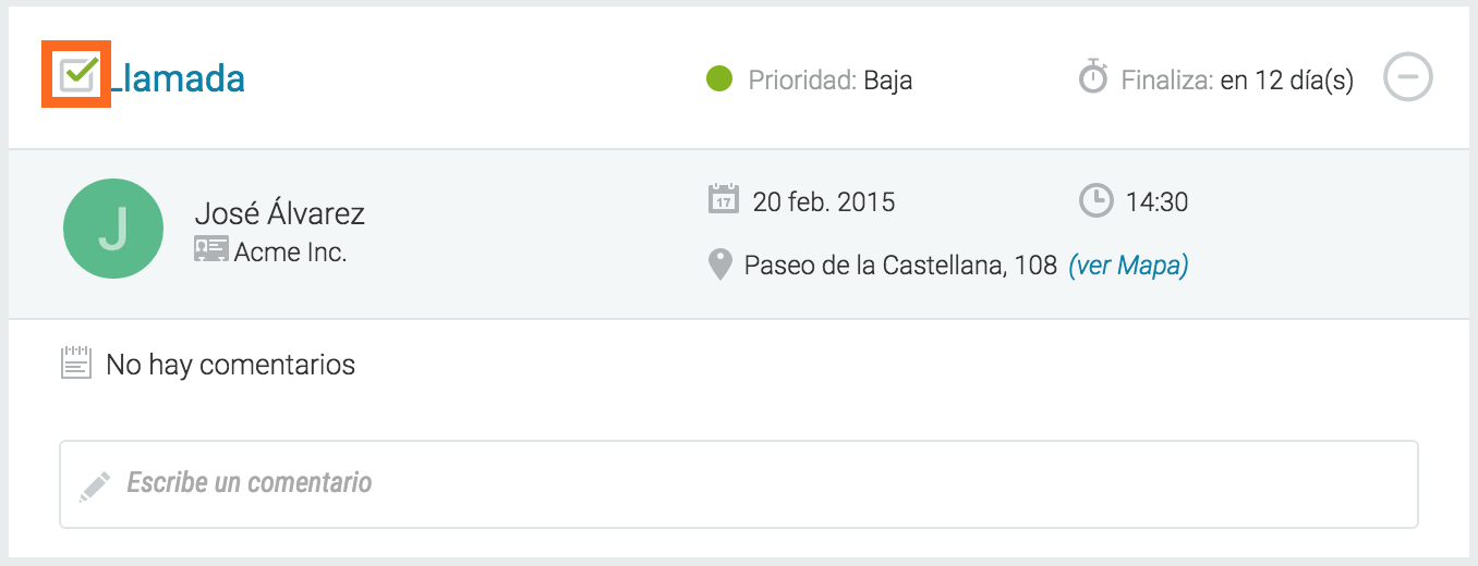 Una vez realizados estos pasos se nos mostrará en el calendario la tarea que acabamos de crear. Si por alguna razón queremos editarla, podemos hacer click en ella y se nos muestra la tarea para poder editarla. Una vez realicemos la tarea podemos marcarla como realizada (Completada) con solo marcar el check al lado del título de la tarea como se muestra en la imagen: