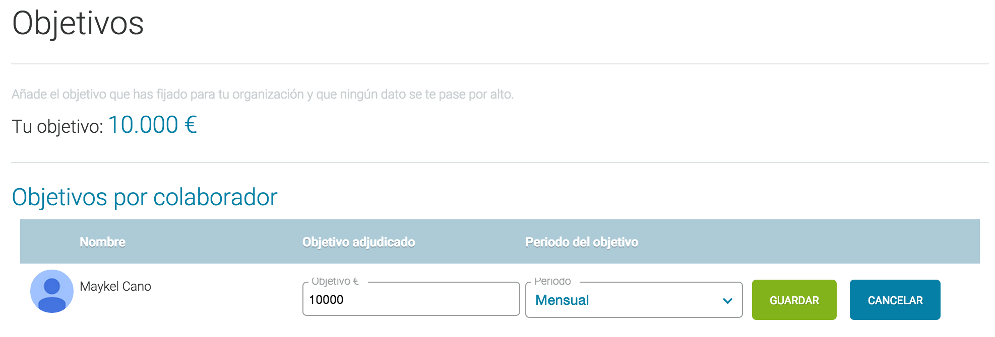 Posteriormente podremos modificar este objetivo para cada usuario modificando tanto su cantidad como su periodicidad: